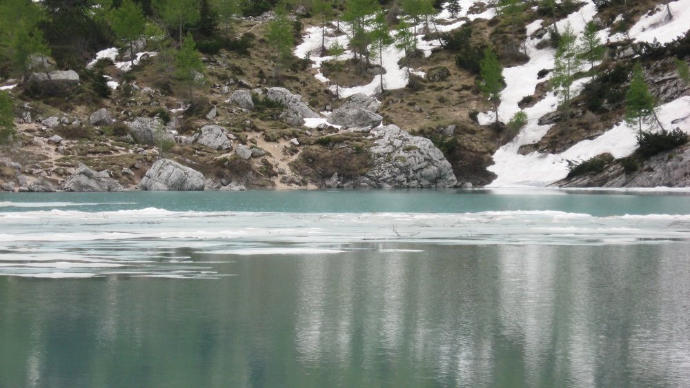 Full size 1000 × 563 pixels Dolomity Lago de Sorapis. To tu wśród soczystych traw i w cieple prawie letnich promieni słonecznych mieliśmy rozbić namiot… Ale siąpiło i był obok otwarty schron… nie musieliśmy zgrywać twardzieli. Previous image Next image