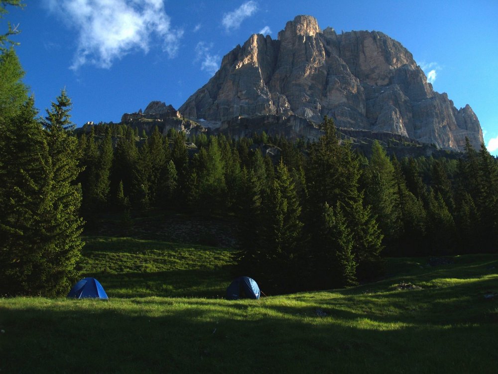 Full size 1000 × 750 pixels Dolomity Col De Bos. Spaliśmy przy parkingu. Jedną noc można spać na dziko, ale rano trzeba zwijać namioty, by ewentualna straż widziała, że nie było to dłuższe obozowanie. Previous image Next image