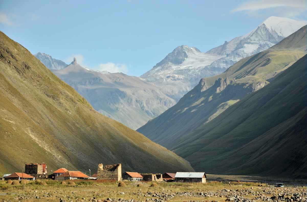 DSC_0045 Full size 1200 × 790 pixels Kaukaz wokół Kazbegi Kvemo Okrokama to wioska niemal wyludniona, ale pogranicznicy swój posterunek mają. Nawiązali z nami kontakt wzrokowy. Previous image Next image