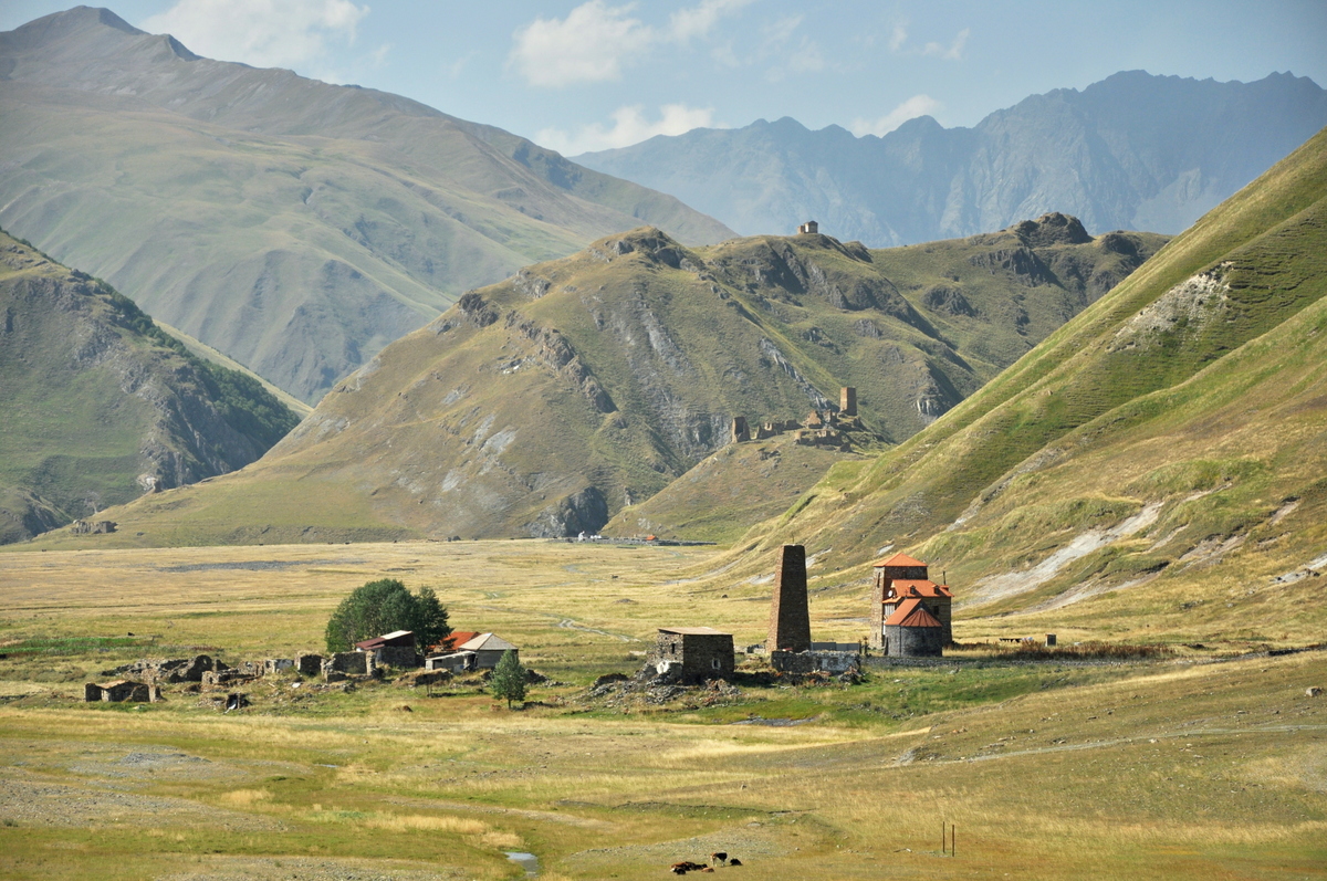 DSC_0122 Full size 1200 × 797 pixels Kaukaz wokół Kazbegi Abano. Dwa monastyry: ten odnowiony, ładny po prawej, to żeński, a któraś z chałupek po lewej, to męski. Previous image Next image