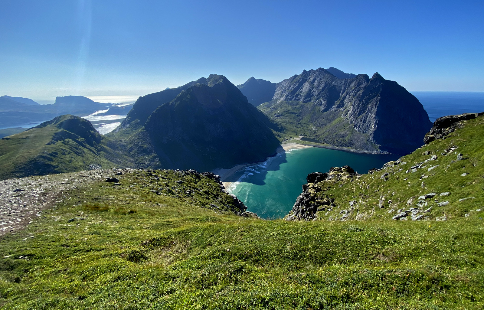 Full size 1600 × 1025 pixels Lofoten, Norge W dole plaża Kvalvika. Bezpośrednio nad plażą po lewej stronie: Moltinden 651 m. W tyle po środku – Kitinden 757 m, a masyw poprawej stronie to Litljordtinden 754 m. Previous image Next image