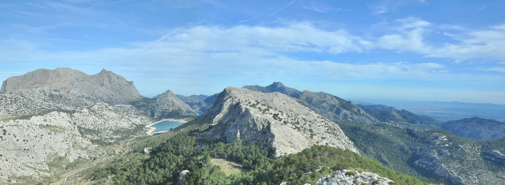 Full size 1000 × 367 pixels Mallorca – España Od najwyższego punktu Majorki (Puig Major po lewej) po brzeg morza i nadmorskie klify (po prawej). Previous image Next image